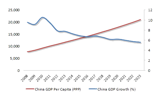 Figure China’s Growth Deceleration, Rising Per Capita Incomes, 2008-E2023